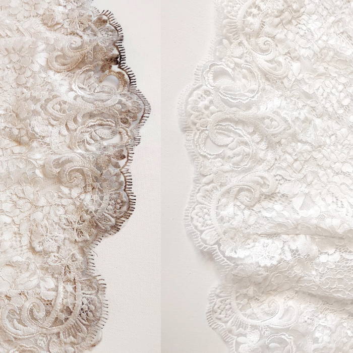 Some stains like perspiration, food & beverages appear over time, even if you dress has been dry cleaned.